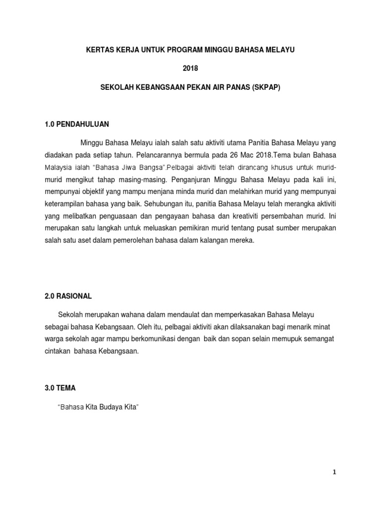Kertas Kerja Program Minggu Bahasa Melayu Dengan Pss 2018 Pdf
